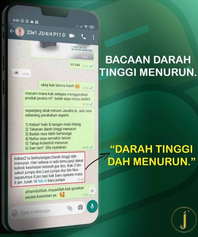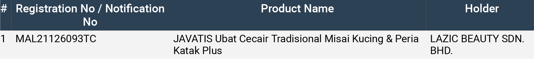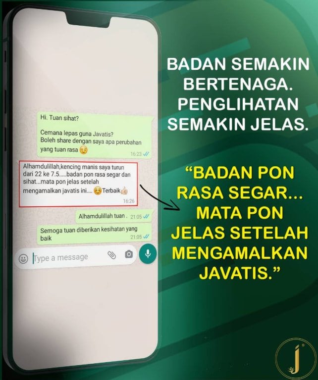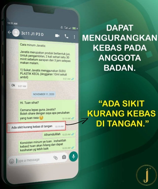 Tiada kesan sampingan. Jus Javatis telah diuji secara klinikal di makmal bertauliah dan mendapat kelulusan KKM dengan nombor MAL: MAL21126093TC.